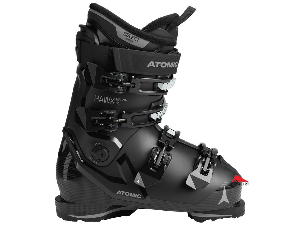 Atomic Hawx Magna 80 je oblíbený základní model z řady širokých lyžařských bot Hawx Magna, který nabízí univerzální výkon s nítzkou flexí 80 a šíroký skelet o šířce 102 mm. Díky stejné konstrukci Prolite jako u modelů Hawx Ultra a Prime poskytuje dobrý přenos síly a stabilitu díky strategickým zesílením v klíčových zónách. Technologie Energy Link dodá každému vašemu oblouku rychlost díky dynamickému spojení mezi skořepinou a komínem. Asymetricky tvarovaná, elastická přední část vnitřní botičky 3D Stretch Toe Box poskytuje větší pohodlí pro palec. Odnímatelná manžeta komínu s adaptivním systémem přizpůsobení (AFS) nabízí v případě potřeby více místa kolem lýtka. Pokud potřebujete měkčí a širokou botu, pak je tento model správnou volbou.