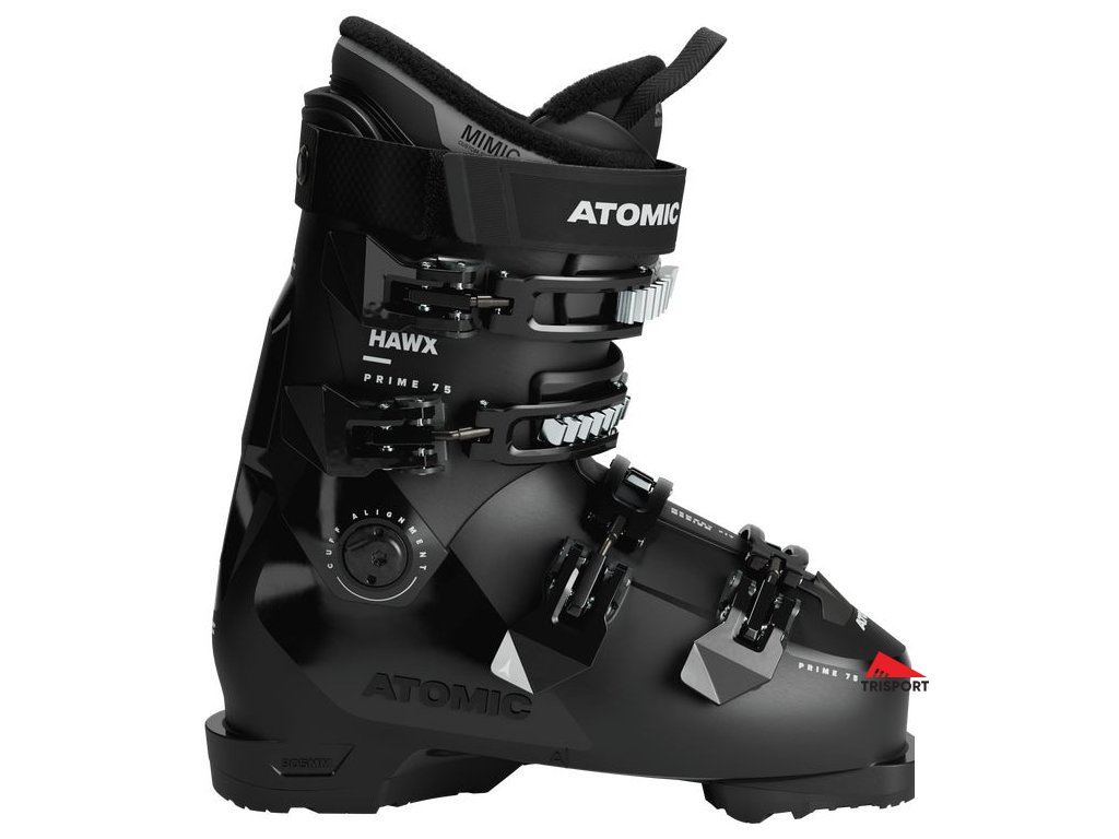 Boty Atomic Hawx Prime 75 W jsou určeny pro all-mountain lyžařky se středně širokými chodidly, mají univerzální, středně široký skelet 100mm a nízkou flexi 75. Tato bota na sjezdové lyžování je navržena s použitím technologie Prolite, což je převratná konstrukce od společnosti Atomic se strategicky umístěnými výztuhami v klíčových zónách, a poskytuje tak lepší funkčnost a stabilitu a nižší hmotnost. Technologie Energy Link propojující zadní část skořepiny a komínu boty poskytuje znatelně lepší odezvu při lyžování. Anatomicky předtvarovaná polstrovaná vnitřní botička Mimic Bronze Liner se přirozeně přizpůsobuje oblasti paty a kotníku,. Díky technologii Mimic ji lze tepelně vytvarovat přesně podle tvaru nohy. Asymetricky tvarovaná špička 3D Stretch Toe Box poskytuje ve vnitřní botičce více místa v oblasti palce. Tato bota má spoiler komínu s adaptivním systémem přizpůsobení (AFS), který lze snadno vyjmout pro větší prostor v oblasti lýtka. Pohodlná bota Atomic Hawx Prime 75 W je skvělým vstupním modelem dámské řady Hawx Prime W se střední šířkou skeletu.